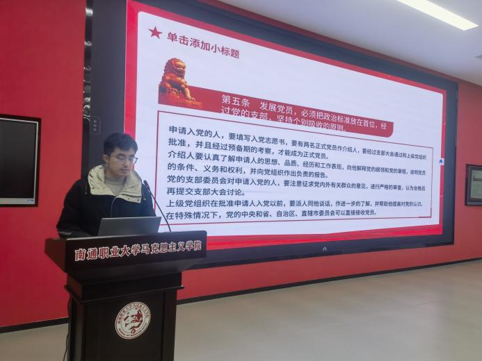 在培训中,马克思主义学院教师陶燕辉、电子信息工程学院辅导员杜欣远分别以《共产党员的情怀----胸怀天下》和《认真学习党章,严格遵守党章》为题进行授课,引导同学们树立胸怀天下的情怀,增强党章党规意识,坚定对马克思主义的信仰、对社会主义和共产主义的信念,自觉加强党性锻炼,努力提高自身综合素质。