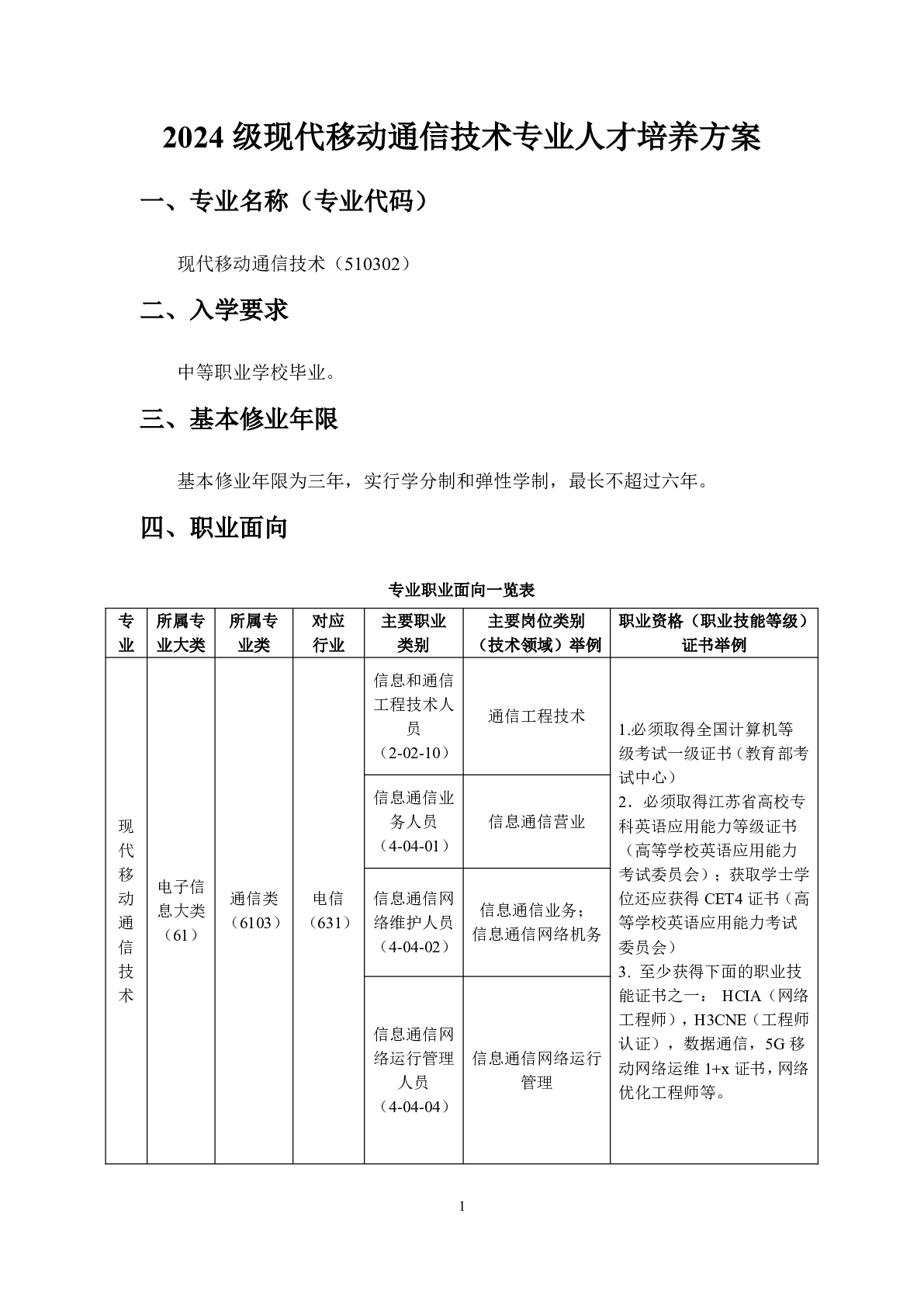 2024级现代移动通信技术专业人才培养方案(职教一)