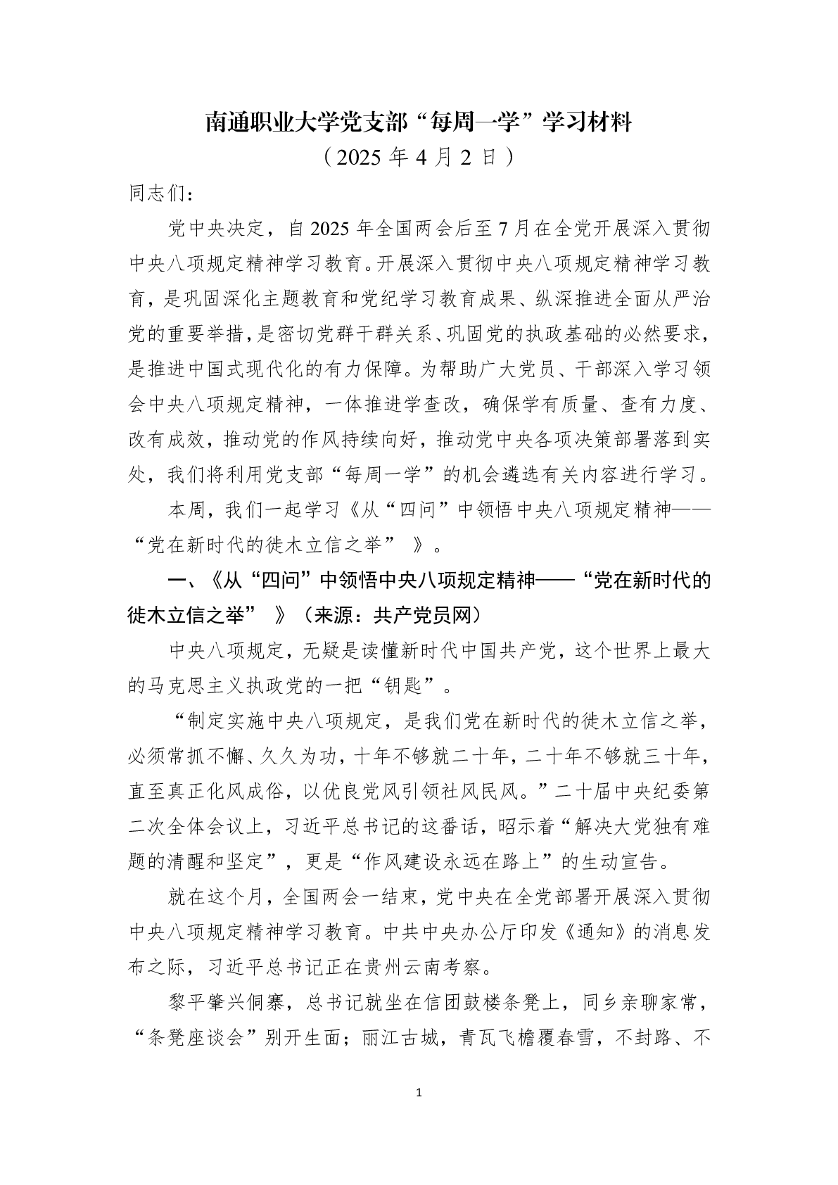 每周一学|第四周学习材料——教工第三党支部