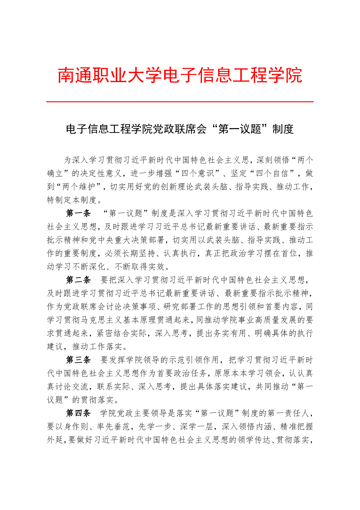 电子信息工程学院党政联席会“第一议题”制度