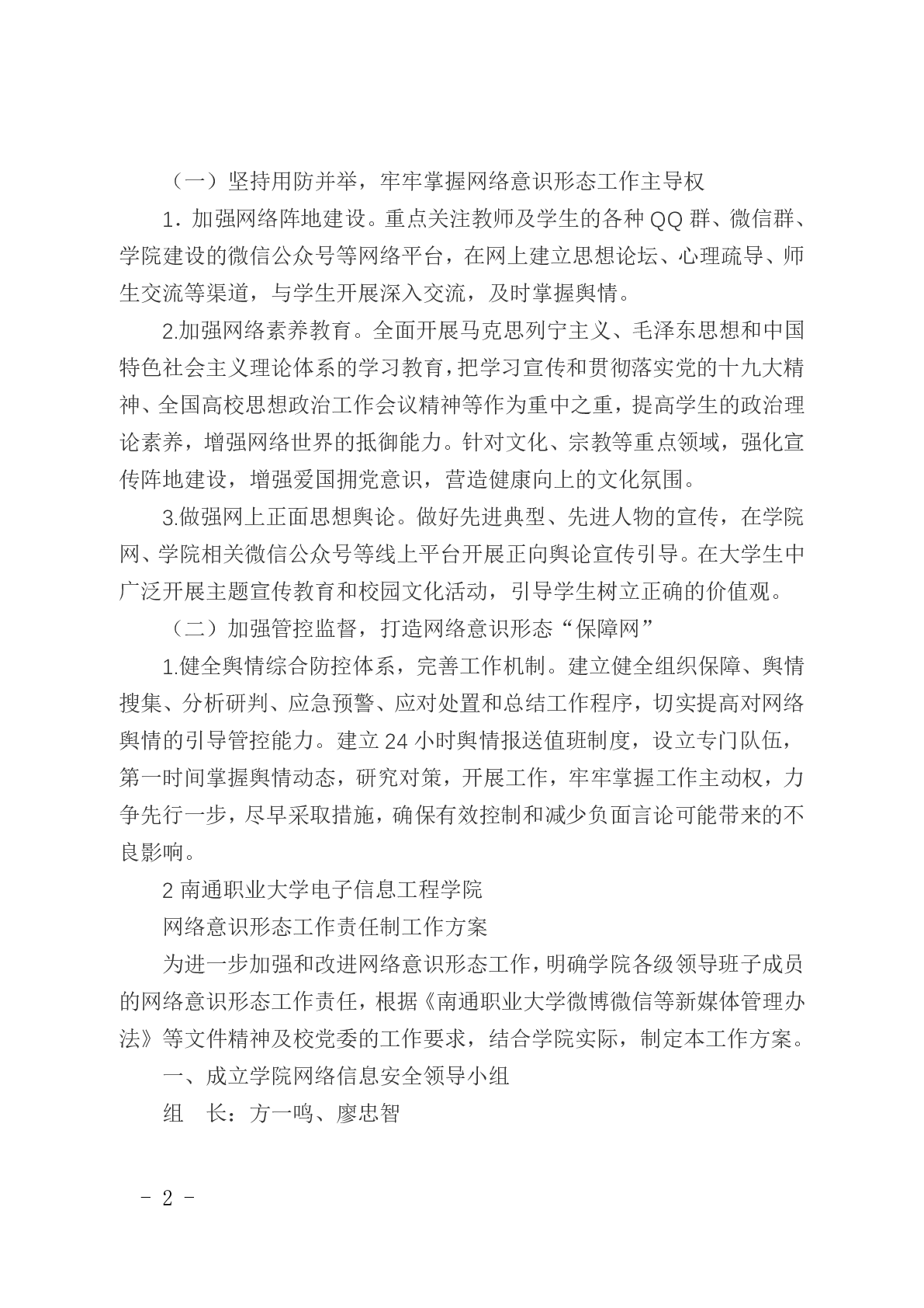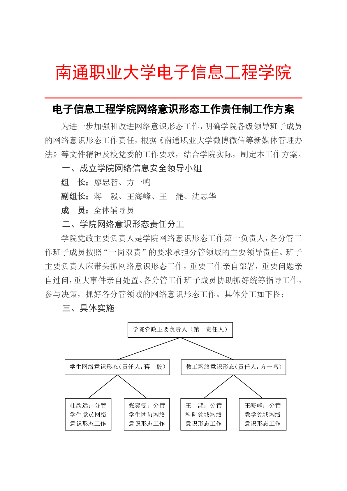 电子信息工程学院网络意识形态工作责任制工作方案