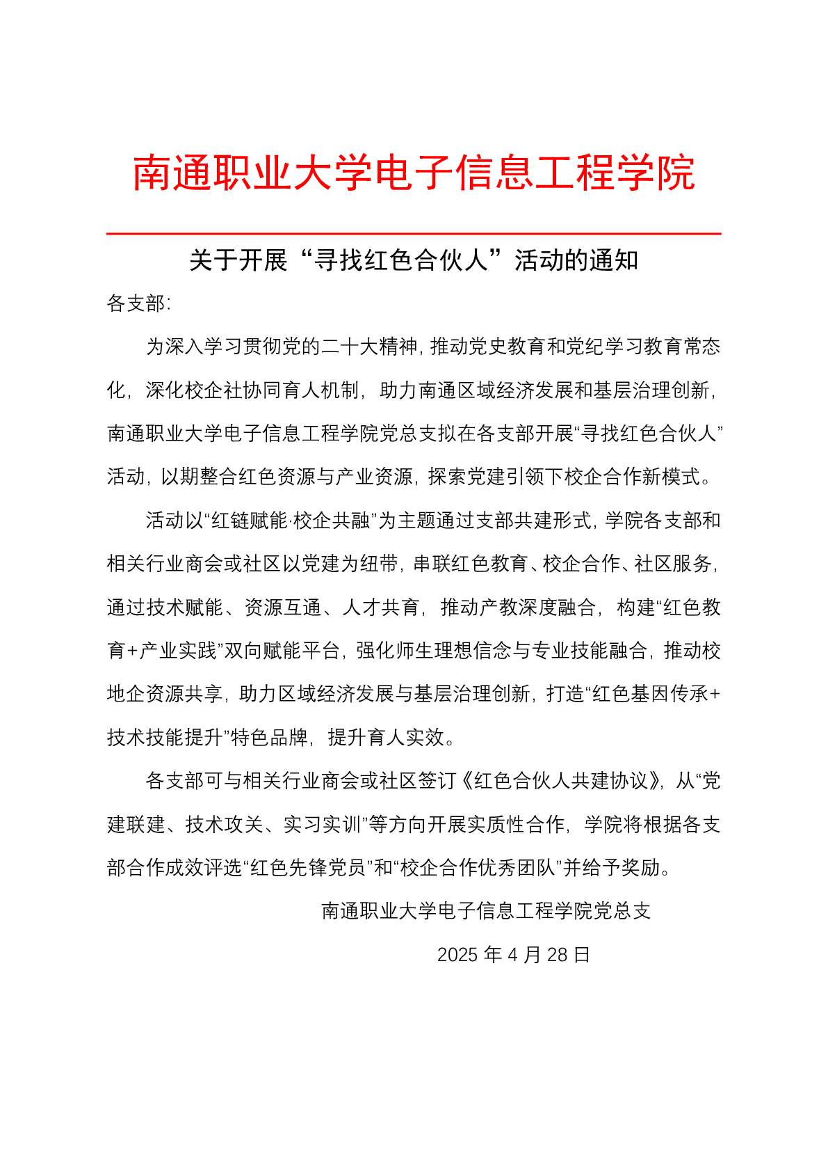 电子学院关于开展“寻找红色合伙人”活动的通知